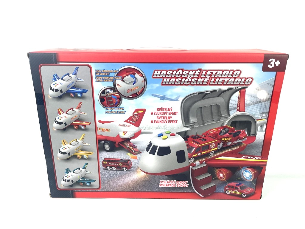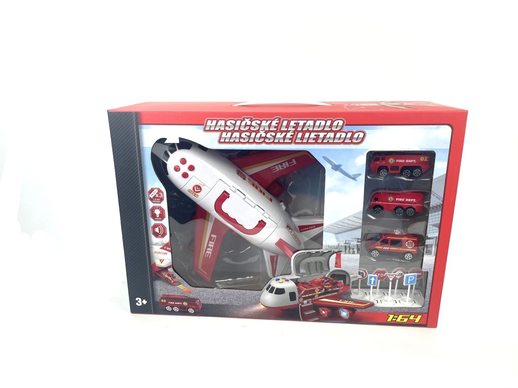 Ugunsdzēsēju lidmašīna ar kravas nodalījumu un 3 mašīnītēm ir lielisks komplekts bērniem, kas ar gaismas un skaņas efektiem sniedz stundām ilgu izklaidi.