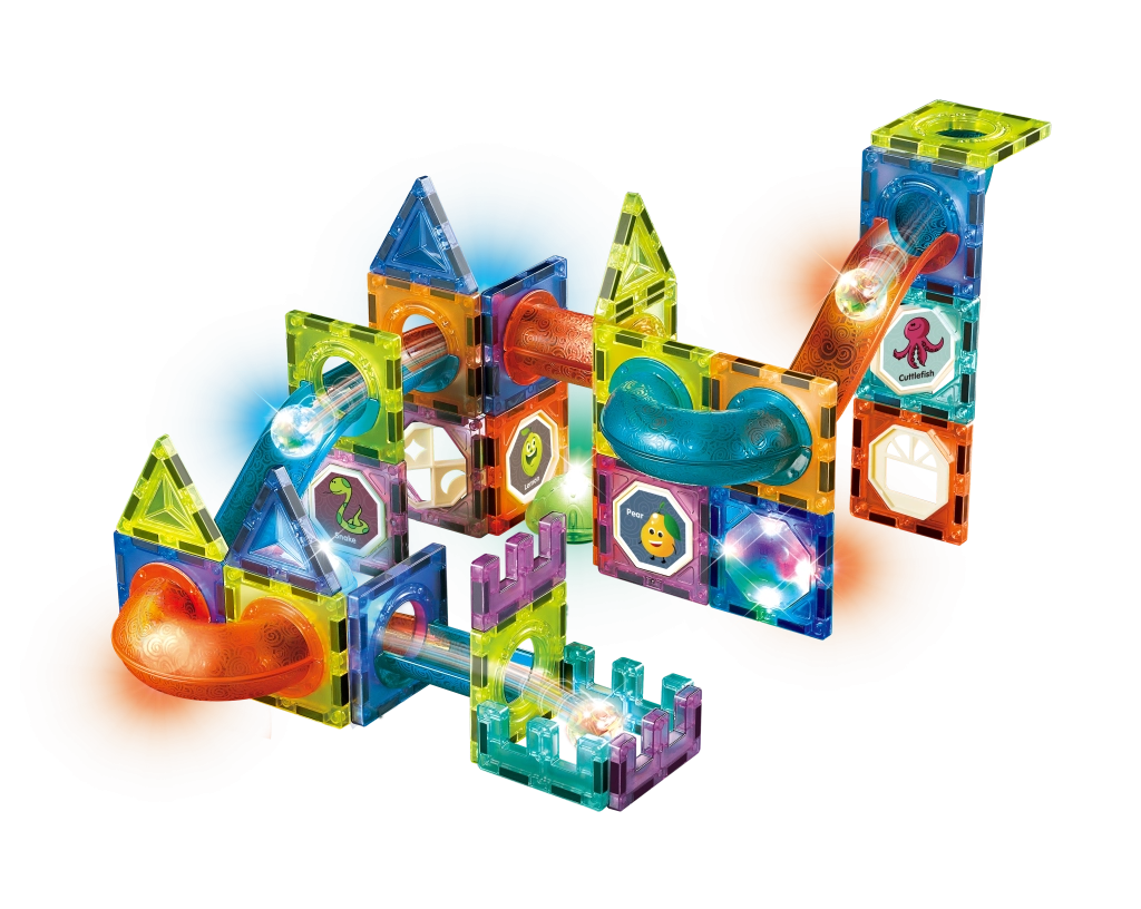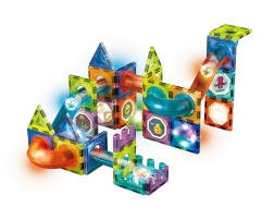 Izveido savu bumbiņu trasi un pavadi stundas, būvējot, spēlējoties un atklājot! Šis konstruktors ļauj veidot dažādas trīsdimensionālas struktūras vai spēlēt dažādas spēles. Trase ar gaismas efektiem, kas darbojas ar LR1130, LR41 un CR1220 baterijām, padara katru spēli vēl aizraujošāku. Baterijas ir vienreizējas un neatslēdzamas.