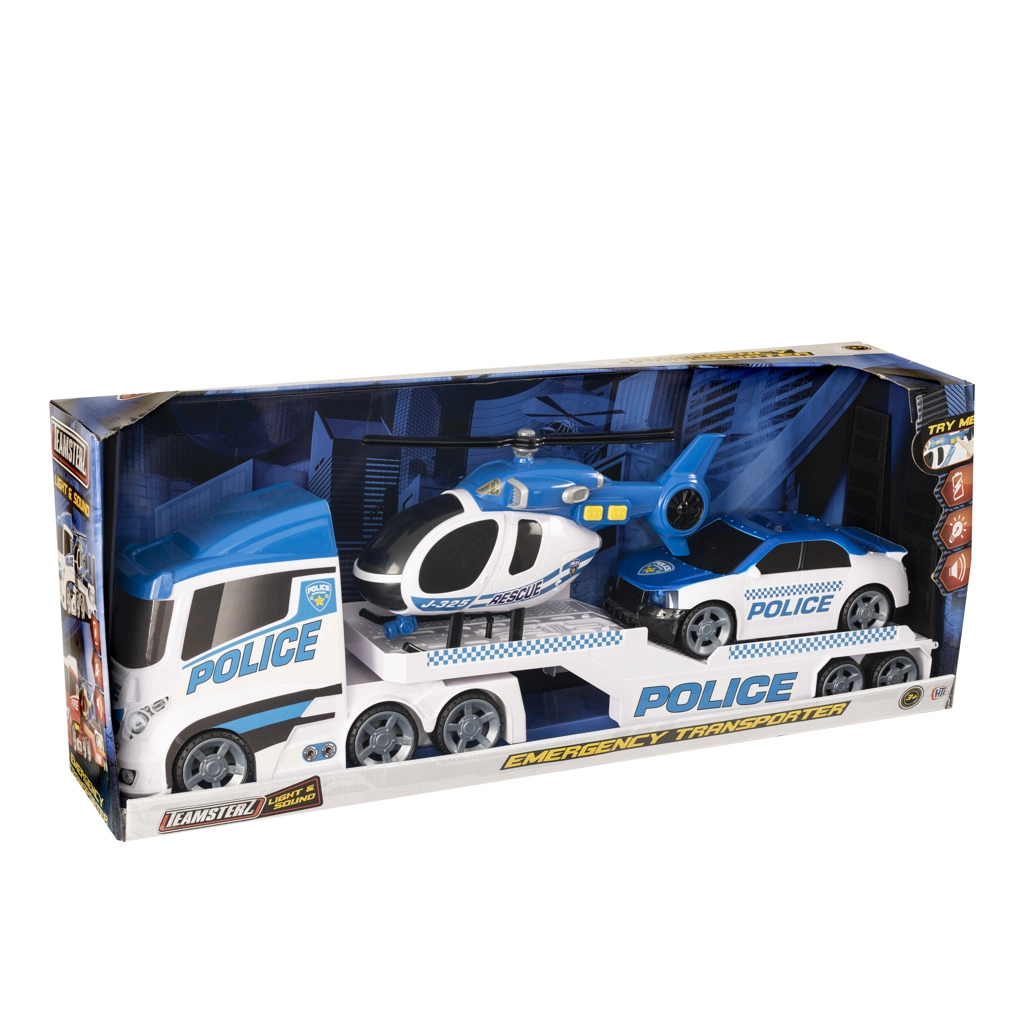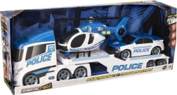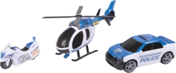 Piedzīvojiet adrenalīna pilnas policijas misijas ar šo pilno komplektu, kurā ietilpst transportēšanas auto, helikopters un mazā policijas mašīna. Spēļu komplekts ar gaismas un skaņas efektiem, kas rosina bērnu iztēli.