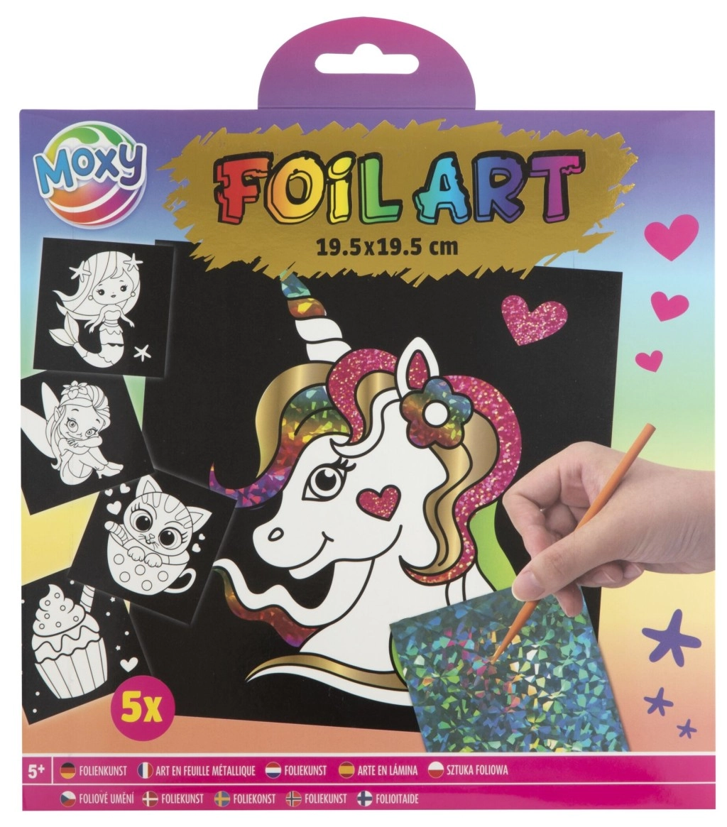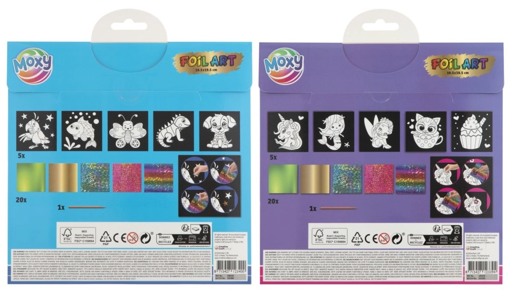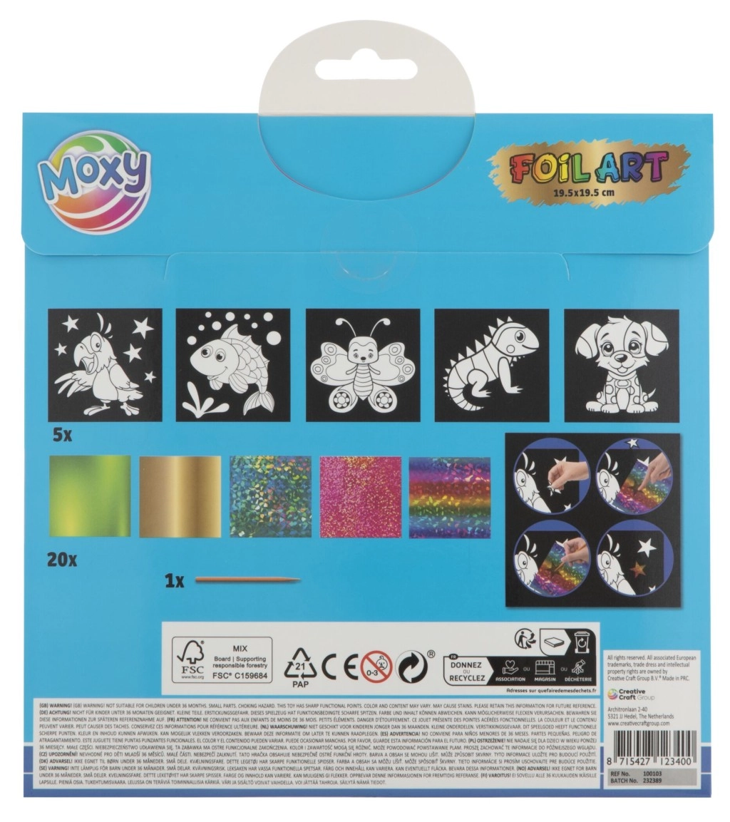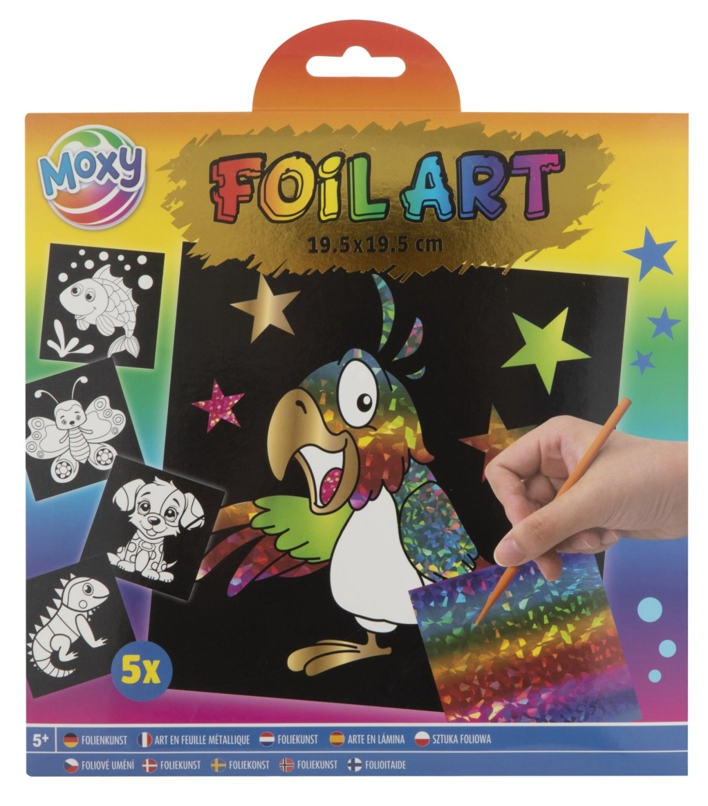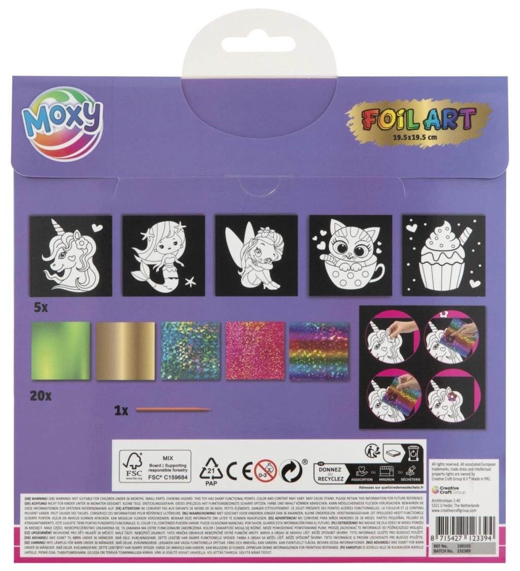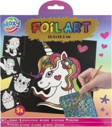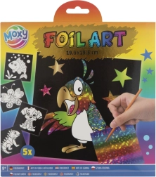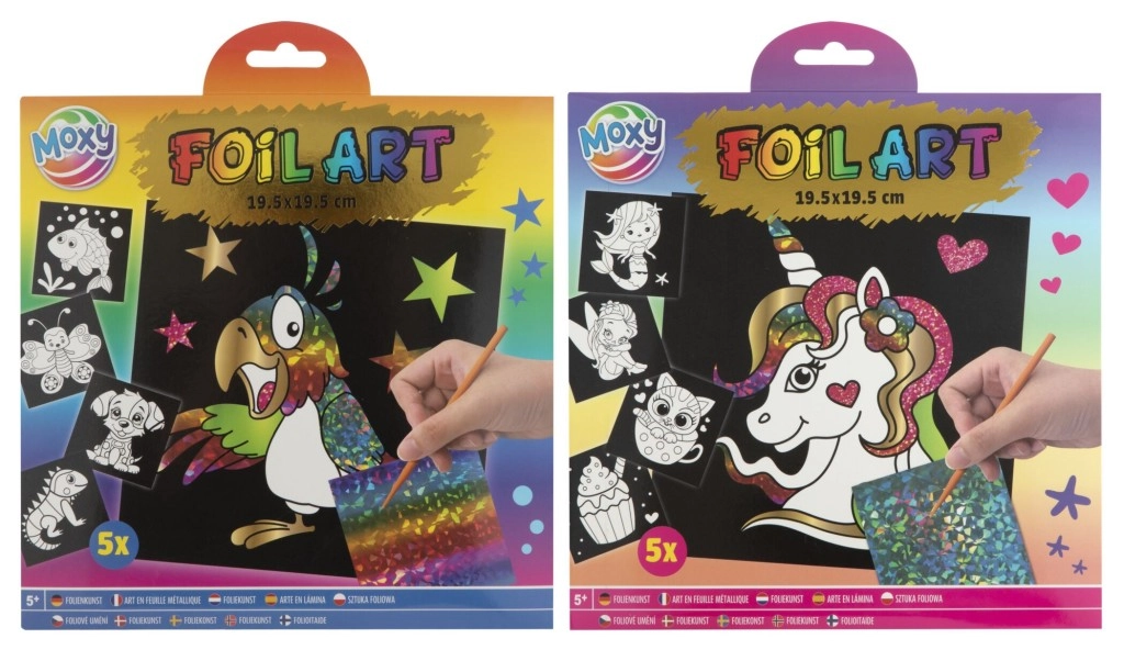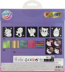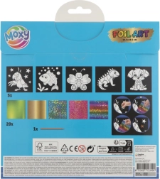 Komplektā ietilpst pieci dažādi attēli ar pašlīmējošām virsmām, kuras var apdarīt pēc savas ieceres. Bērni var izmantot 20 košas folijas ar dažādiem motīviem, kas nodrošina neierobežotu radošumu. Pietiek izvēlēties attēla daļu, noņemt aizsargkārtu un līmējošo virsmu dekorēt ar izvēlēto foliju.