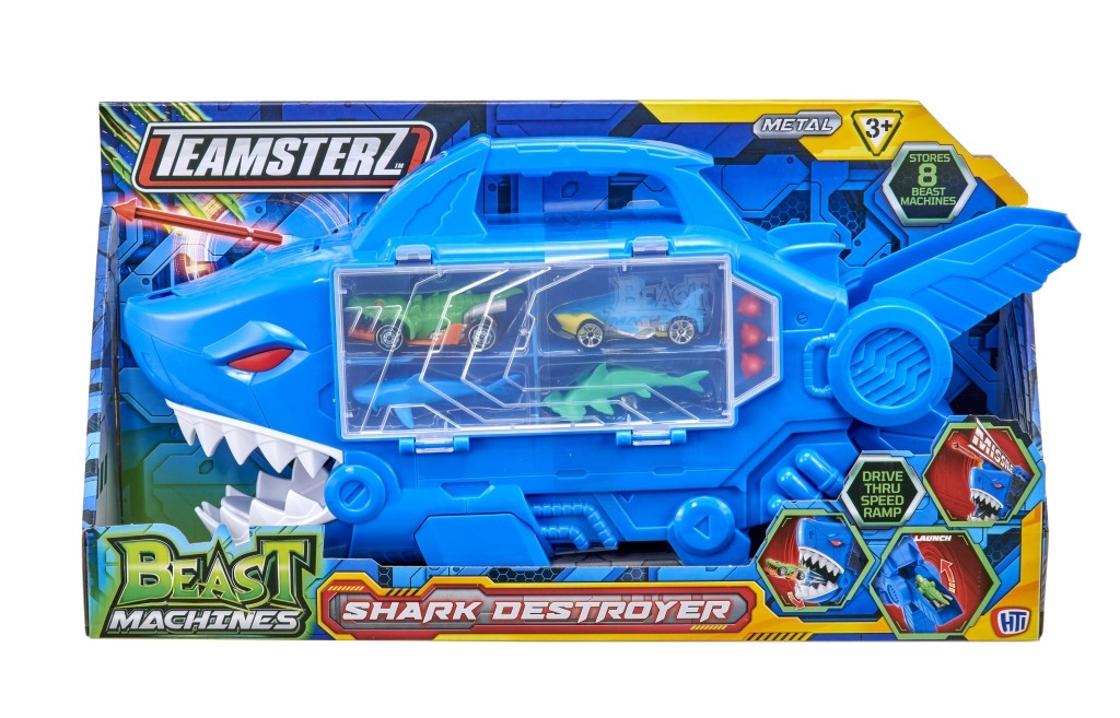 TEAMSTERZ haizivs garāža apvieno dinamisku spēli, uzglabāšanu un pārnēsāšanu. Iekšpusē ir caurbraucamā rampa, pa kuru mašīnas traucas tieši cauri haizivs žokļiem. Integrēts raķešu palaidējs haizivs galvā piešķir katram braucienam kārtīgu adrenalīna devu.