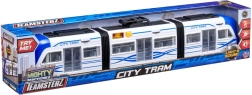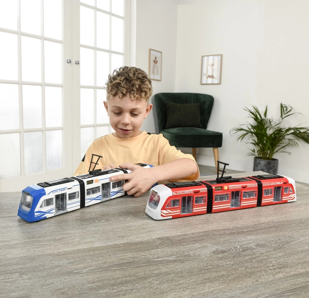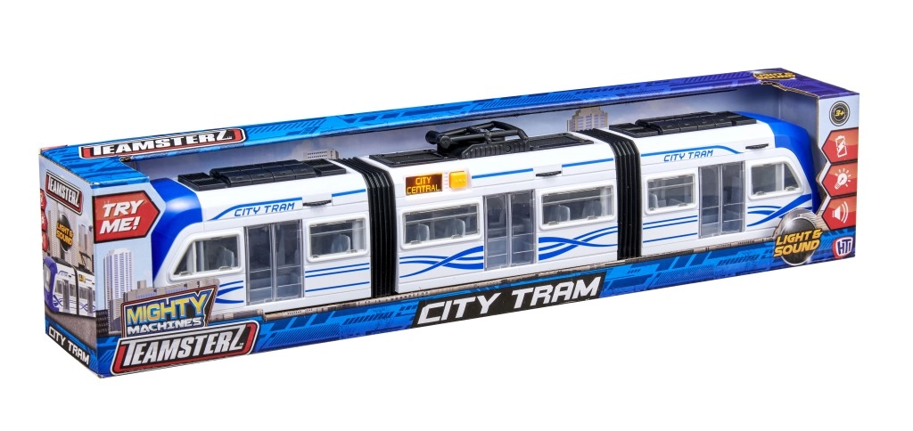 Atklājiet pilsētas sabiedriskā transporta pasauli ar Teamsterz tramvaju. Šī rotaļlieta ir aprīkota ar atveramām durvīm un diviem locīgiem savienojumiem, kas nodrošina vieglu lokanību un atdarina īsta tramvaja kustību.