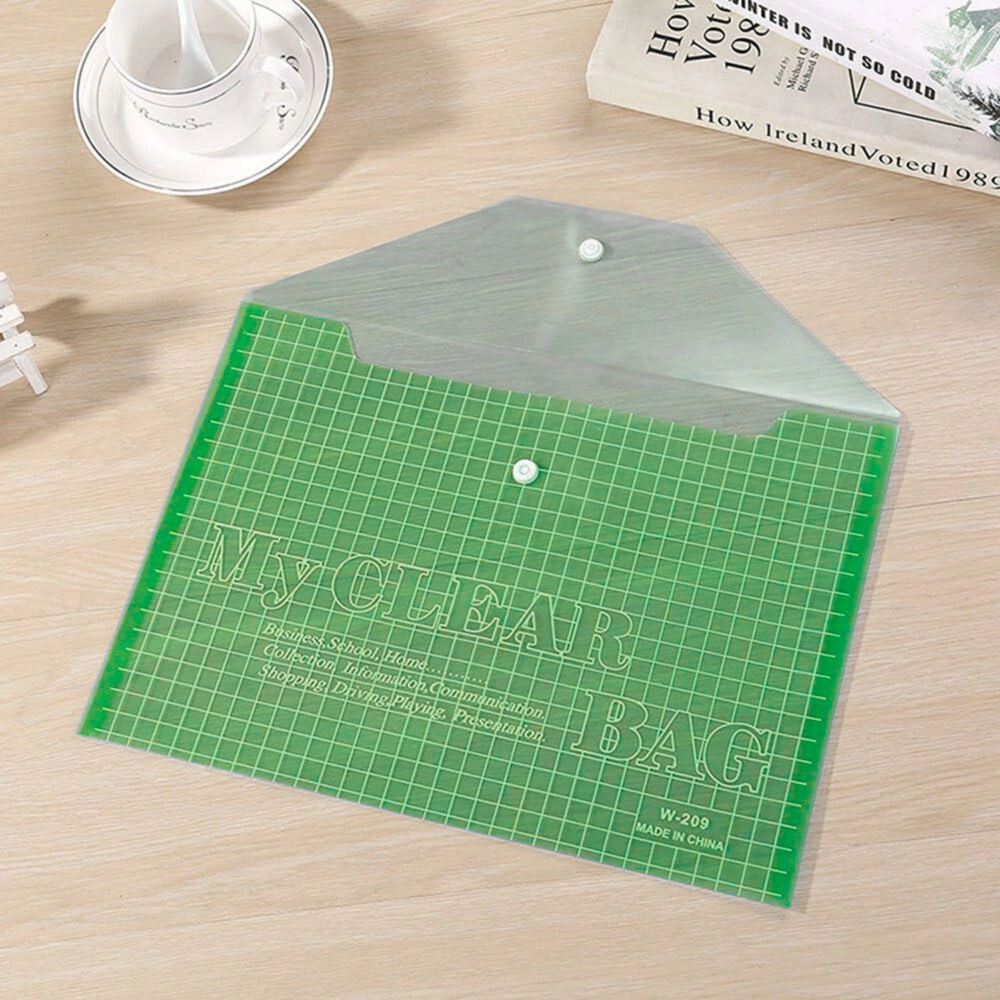 Uzturiet savus dokumentus perfektā kārtībā un vienmēr pa rokai. Kvalitatīva polipropilēna aploksnes ir caurspīdīgas, tāpēc saturs ir uzreiz redzams, un pateicoties spiedpogas aizdarei viss paliek droši aizvērts. Zaļā krāsa palīdz kārtot un organizēt dokumentus.