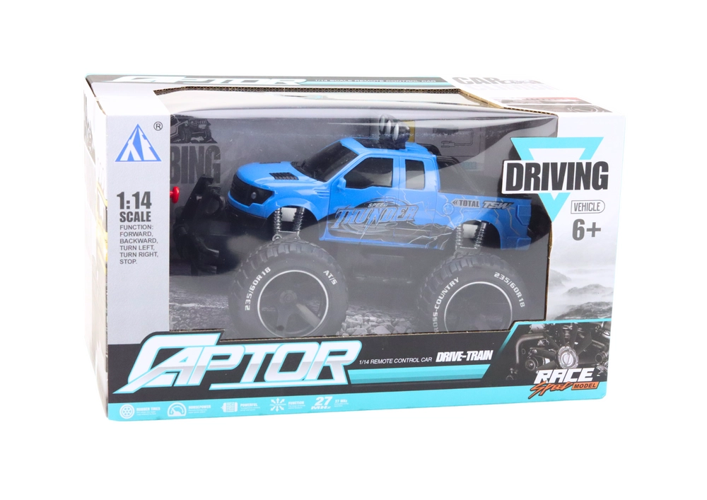 Zilais bezceļa RC auto mērogā 1:14 ir lieliska izvēle bērniem un iesācējiem off-road entuziastiem. Izturīgā konstrukcija, reālistiska virsbūve, buferi un luktuŗi izceļ pievilcīgo izskatu, savukārt lielās riepas tiek galā ar dažāda tipa virsmām.