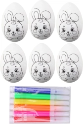 Šis polistirola olu komplekts ir lieliska izvēle lieldienu radošajiem darbiem mājās, skolā un bērnudārzā. Katras olas virsmu rotā mīlīgs truša raksts, un pateicoties gludajai tekstūrai, tās ir ērti krāsot un dekorēt. Iepakojumā iekļauti 6 krāsaini flomāsteri, lai varētu sākt veidot uzreiz.