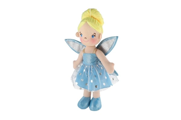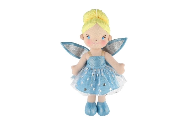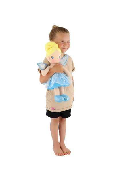 Lelle ir ģērbta zilās kleitās ar mirdzošiem spārniem, kas tai piešķir īstu pasaku izskatu.