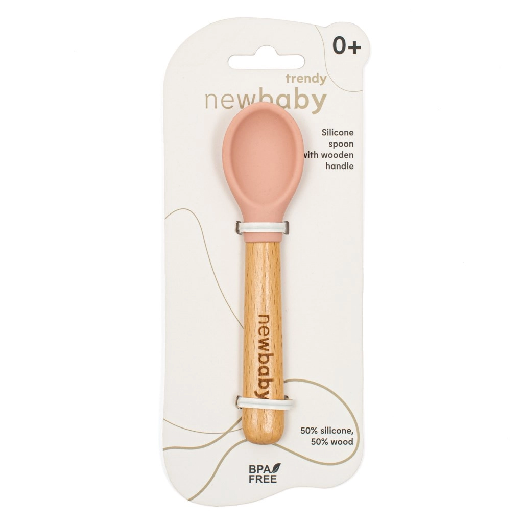 Bērnu karote no sērijas New Baby Trendy piedāvā koka rokturi ar smalku logotipa gravējumu un kvalitatīvu BPA nesaturošu silikonu. Šī 14 cm garā karote ir paredzēta vienkāršai un drošai bērnu barošanai jau no agrīna vecuma.