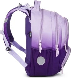 Skolas mugursoma Oxy Next pievilcīgā ombre violetā tonī ir radīta ikdienas komfortam un skolēnu drošībai. Ergonomiski veidota mugura, polsterētas plecu siksnas un regulējama krūšu siksna vienmērīgi sadala slodzi un veicina pareizu stāju. Pateicoties pārskatāmajai iekšējai struktūrai un divām ietilpīgām sānu kabatām, bērniem viss ir pa rokai.