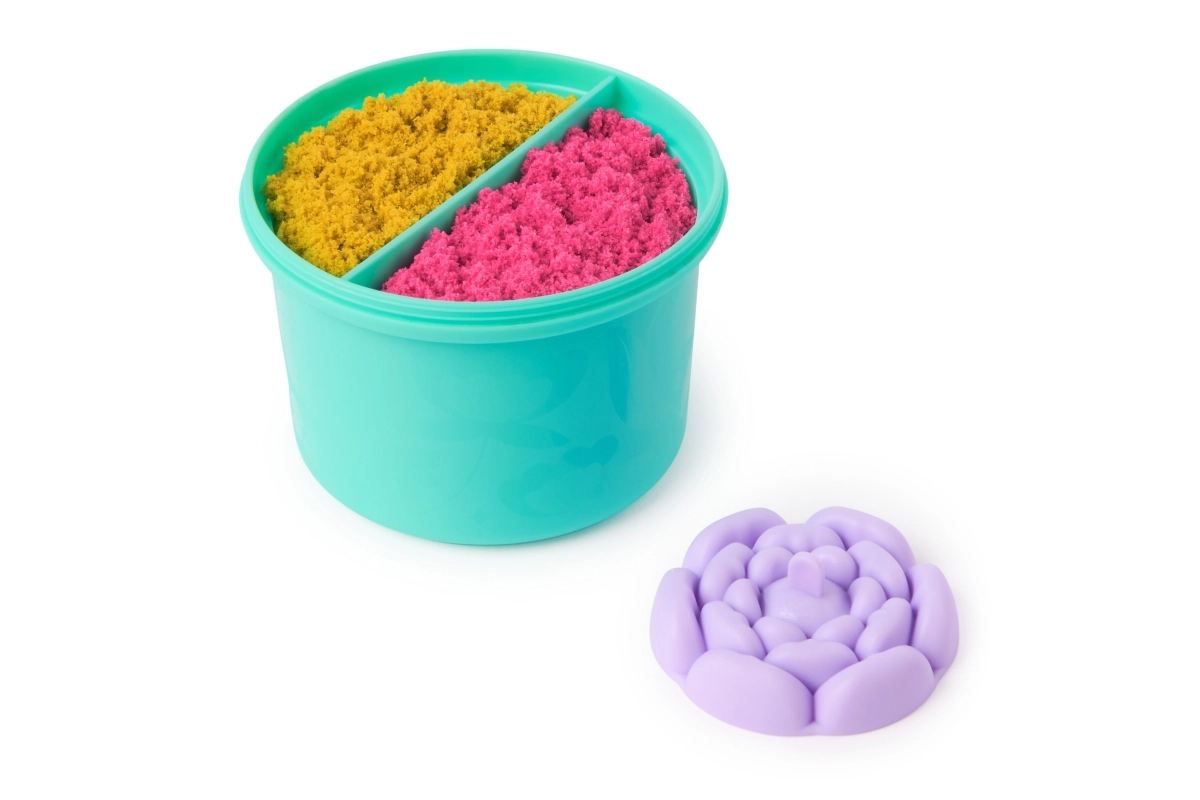 Atklājiet ziedu radīšanas burvību ar Kinetic Sand SquishBlossom komplektu. Uzberiet smiltis uz mīkstas pamatnes, piespiediet formu un vērojiet, kā zieds maģiski uzzied. Sajauciet rozā un dzelteno, lai iegūtu koraļļu oranžo toni – katrs piespiediens sniedz jaunu efektu un rakstu.
