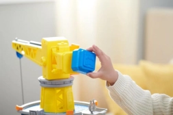 Reālistisks rotējošs celtnis ar papildu satveršanas ierīci priekšmetu celšanai un nolaišanai, kas bērniem sniedz aizraujošu interaktīvu *spēli*.