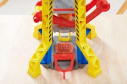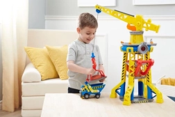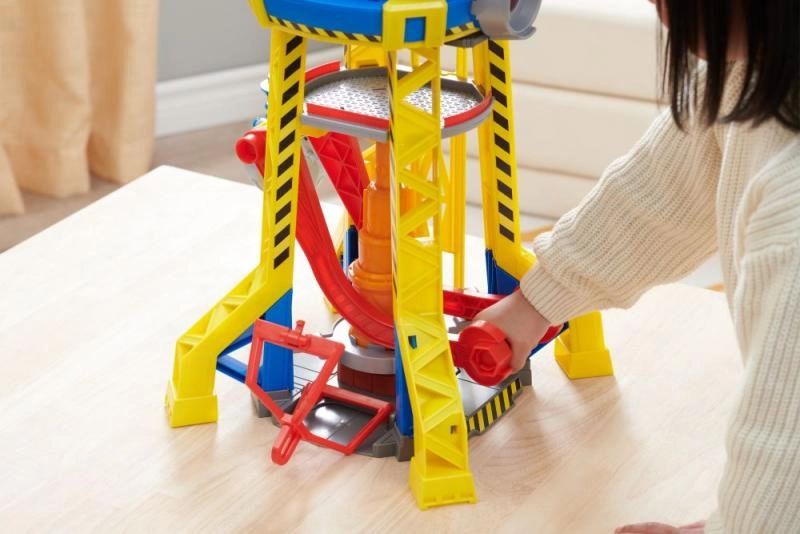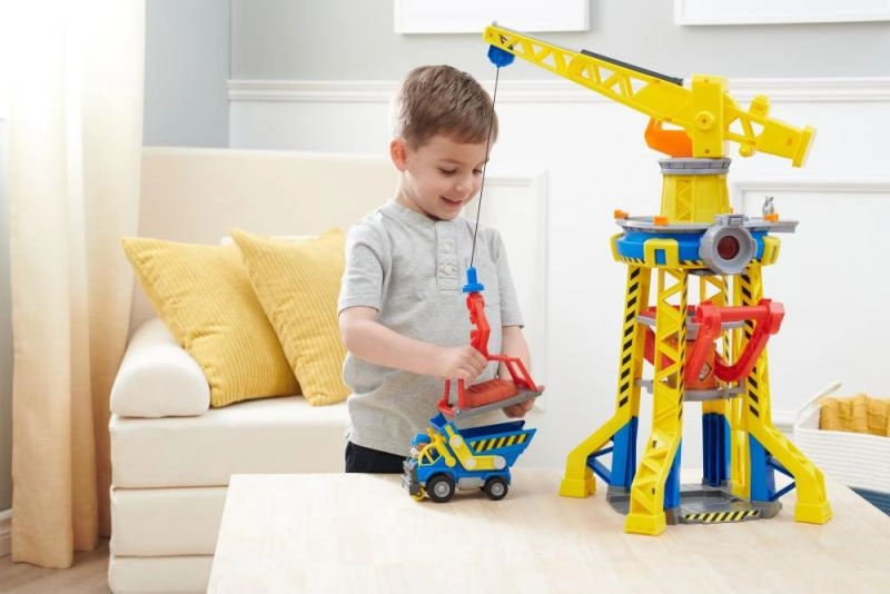 Ievietojiet Rabliju liftā un paceliet viņu torņa augšdaļā uz celtņa vadības kabīni. Izmantojiet celtni, lai paceltu blokus un pārvietotu tos pareizajā vietā. Papildu pārsteigumam nospiediet lielo sarkano pogu uz torņa, lai ieslēgtu gaismas un atskaņotu seriālā dzirdamās skaņas. Vēl vairāk jautrības gūšanai atrodiet citus būvniecības kravas auto un figūriņas no Rubble & Crew sērijas.