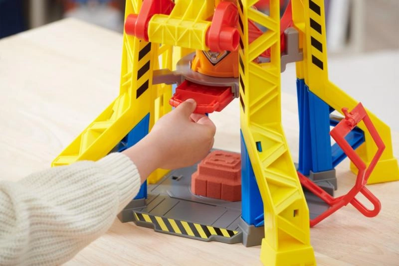 Komplekts Rubble & Crew: Celtņa tornis ietver realistiski izstrādātu celtņa torni, tādu pašu kā seriālā, ar iebūvētiem būvniecības rīkiem, kas piemēroti bērniem. Tornī ir kinetisko smilšu formēšanas sistēma, kas ļauj izgatavot savus būvniecības blokus. Vienkārši izmantojiet lielo sarkano sviru, lai iedarbinātu presi un izveidotu savas būvkubes.