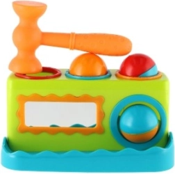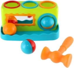 Šī krāsainā plastmasas siļņa 21 cm garumā ir lieliska izvēle pirmajām attīstošajām rotaļām. Bērni droši iesit trīs bumbiņas sagatavotajās atverēs, tā trenējot satvērienu, spēku un precizitāti. Integrētais spogulītis priekšpusē palielina mijiedarbību un jautrību.
