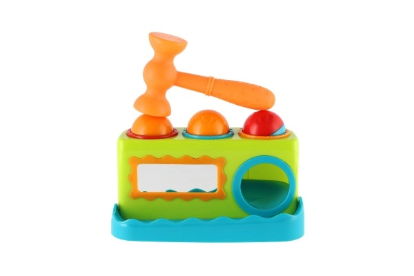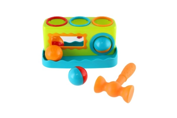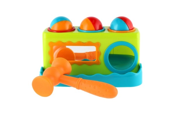 - Siļņa, 3 krāsainas bumbiņas, plastmasas āmuriņš