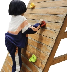 PP materiāls ir izturīgs pret UV starojumu, plaisāšanu un laikapstākļiem, tāpēc komplekts ir lieliski piemērots gan iekštelpām, gan ārtelpām. Katrs satvēriens un rokturis ir veidots stabilitātei un augstai slodzei, lai bērnu rotaļas būtu maksimāli drošas. Komplekts veicina rupjās motorikas, loģiskās domāšanas attīstību un stiprina pašapziņu.