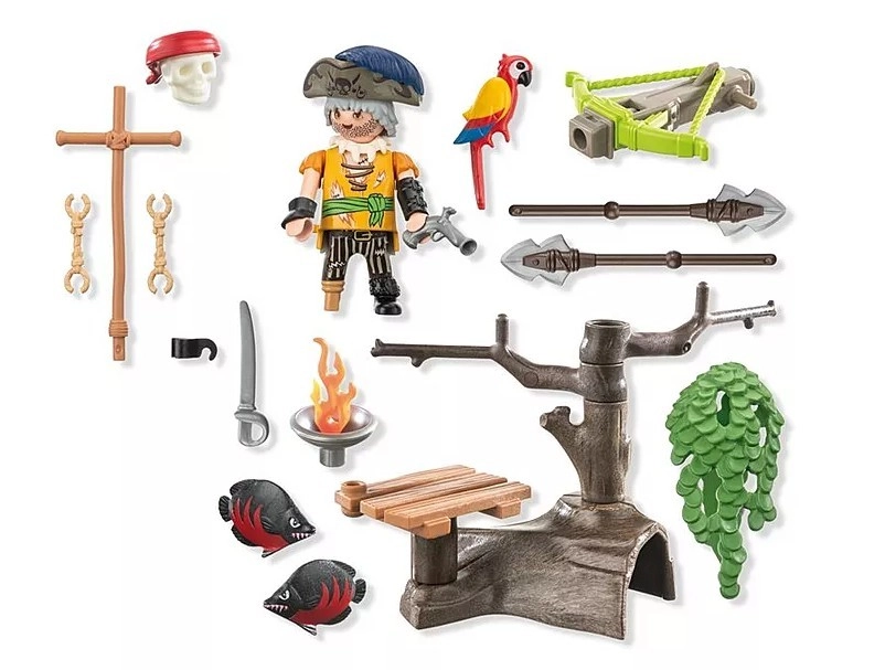 Atklāj pazudušos dārgumus ar Playmobil komplektu Pirāts ar balistu. Plosts ir aprīkots ar grozāmiem lielgabaliem, kas nodrošina aizsardzību kuģojot atklātā jūrā. Rūpīgi atlasītie piederumi ir ievietoti mucā, lai viss būtu gatavs pēkšņiem draudiem.