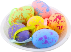 Lieldienu dekoratīvo olu komplekts ir lielisks aksesuārs svētku un pavasara noskaņas radīšanai jūsu mājās vai dārzā. Krāsainie raibie raksti un pasteļtoņi piešķir interjeram siltumu un prieku.