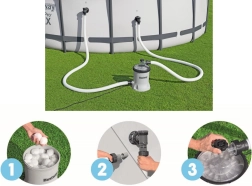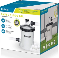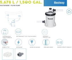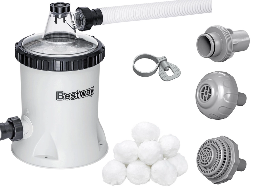 Izbaudiet tīru ūdeni bez piepūles. BESTWAY Polysphere filtra sūknis piedāvā izcilu efektivitāti, salīdzinot ar klasiskajām papīra patronām: vieglās un mazgājamās Polysphere bumbiņas aiztur netīrumus vairākos slāņos un pagarina apkopes intervālus. Caurspīdīgs vāks atvieglo darbības kontroli, un pieslēgšana ir ātra, pateicoties iekļautajiem adapteriem.