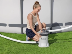 Plūsma 5678 l/h pie sūkņa un 3974 l/h sistēmā nodrošina ātru netīrumu izvadīšanu un vienmērīgu filtrāciju visā baseinā.