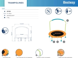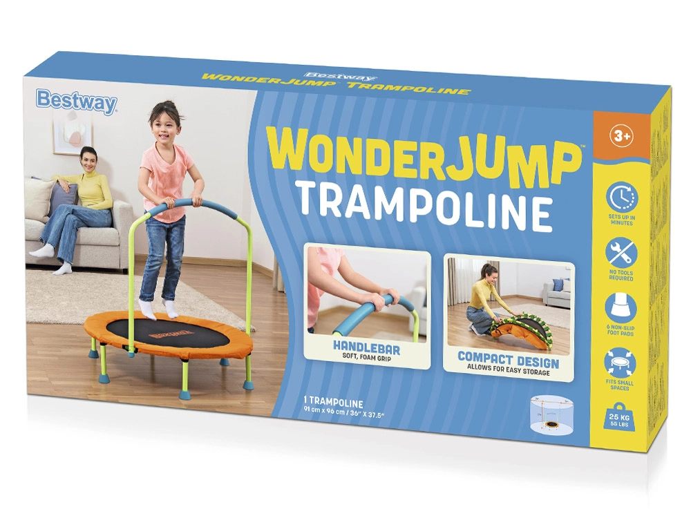 Rosiniet bērnus kustībai rotaļīgā veidā – batuts BESTWAY WonderJump veicina koordinācijas spējas, līdzsvaru un kopējo fizisko formu. Tas ir ideāli piemērots lietošanai telpās un ārā, tam ir izturīgs pulvera pārklājuma rāmis un košs dizains, kas patīk bērniem.