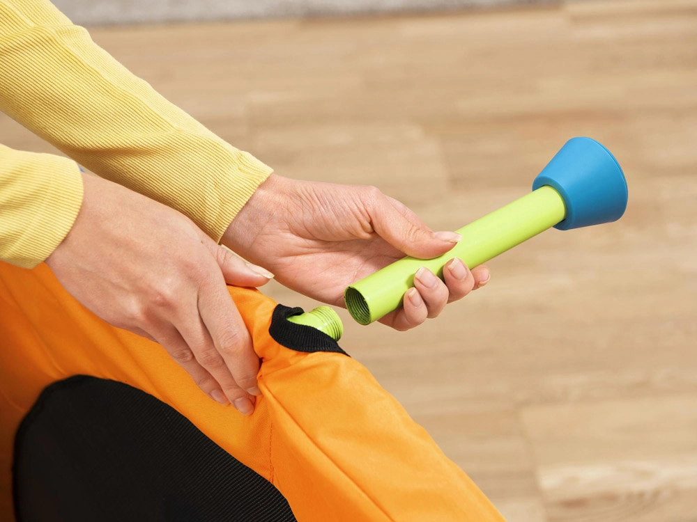Drošība pirmajā vietā: mīkstais putu rokturis palīdz saglabāt stabilitāti lēciena laikā, savukārt 6 pretbuksēšanas kājiņas notur batutu stingri savā vietā. Pateicoties saliekamajai konstrukcijai, to var sagatavot lietošanai bez instrumentiem dažu minūšu laikā un pēc rotaļām viegli novietot.