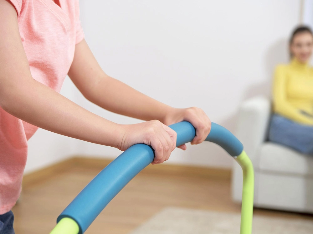 Mīkstais, patīkamais rokturis palīdz bērniem saglabāt stabilitāti un sniedz drošības sajūtu gan treniņa, gan rotaļu laikā.