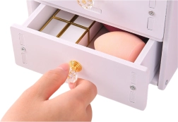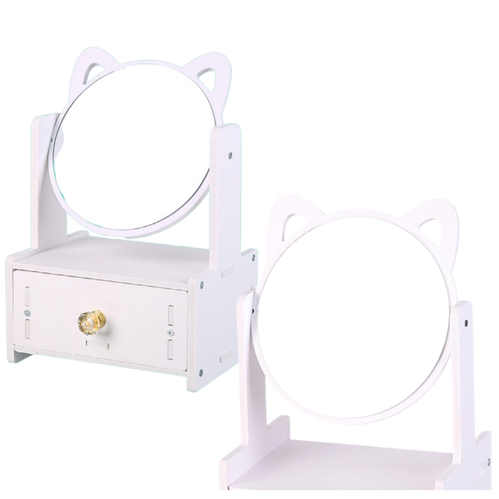 Elegantā mini toaletka ir ideāli piemērota gan mazām, gan lielākām telpām. Pateicoties 360° rotējošajam spogulim, viegli iestatīsiet ideālu leņķi precīzai grimēšanai un ādas kopšanai. Kompaktie izmēri taupa vietu, savukārt praktiskā atvilktne uztur kosmētiku, rotas un sīkumus pārskatāmi un pa rokai.