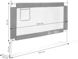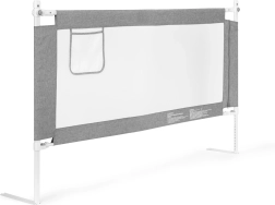 Drošības barjera gultai ar platumu 150 cm no ECOTOYS pasargā bērnus no izkrišanas un ļauj vecākiem baudīt ērtu kopīgu gulēšanu. Tā piedāvā regulējamu augstumu, nolokāmu augšējo rokturi ērtai piekļuvei, elpojošu sietu un praktisku kabatu sīkumiem. Universāla montāža, iespēja saslēgt vairākas barjeras un izturīga tērauda konstrukcija nodrošina ilgmūžību un maksimālu drošību.