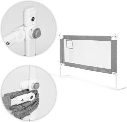 Universālā stiprināšanas sistēma atvieglo uzstādīšanu uz dažāda tipa gultām, bet iespēja saslēgt vairākus paneļus izveido aizsargātu zonu ap gultas perimetru. Izturīgais tērauda, PP un kvalitatīvas tekstila apvienojums garantē stabilitāti un vienkāršu kopšanu – pārvalku var noņemt un izmazgāt.