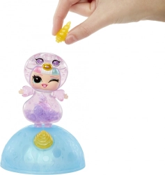 Iepazīsties ar vienradža Tot, kas apvieno kolekcionējamu lelli un nomierinošu vizuālu rotaļu. Caurspīdīgais ķermenītis atdzīvojas, kad iekšā ielej trīs krāsainus šķidrumus – tajā iegriežas koši burbulīši un veido burvīgu lavalampas efektu. Pamatne kalpo gan kā statīvs, gan kā gaismiņa: apstarojot Tot ar mobilā lukturīti, viss efekts iemirdzas.