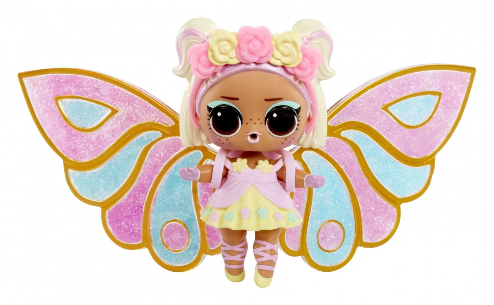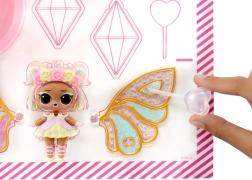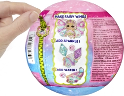 L.O.L. Surprise piedāvā pavisam jaunu spēles un radošuma veidu. Sajauc krāsaino “fejas pulveri” ar ūdeni, aizpildi spārnu šablonu un pēc nožūšanas piestiprini pie lelles. Pateicoties burvīgajiem spārniem un mirdzošajiem efektiem, radīsi oriģinālu dizainu, ar kuru tava feja izcelsies. Bumba vienlaikus kalpo kā stilīgs statīvs eksponēšanai.