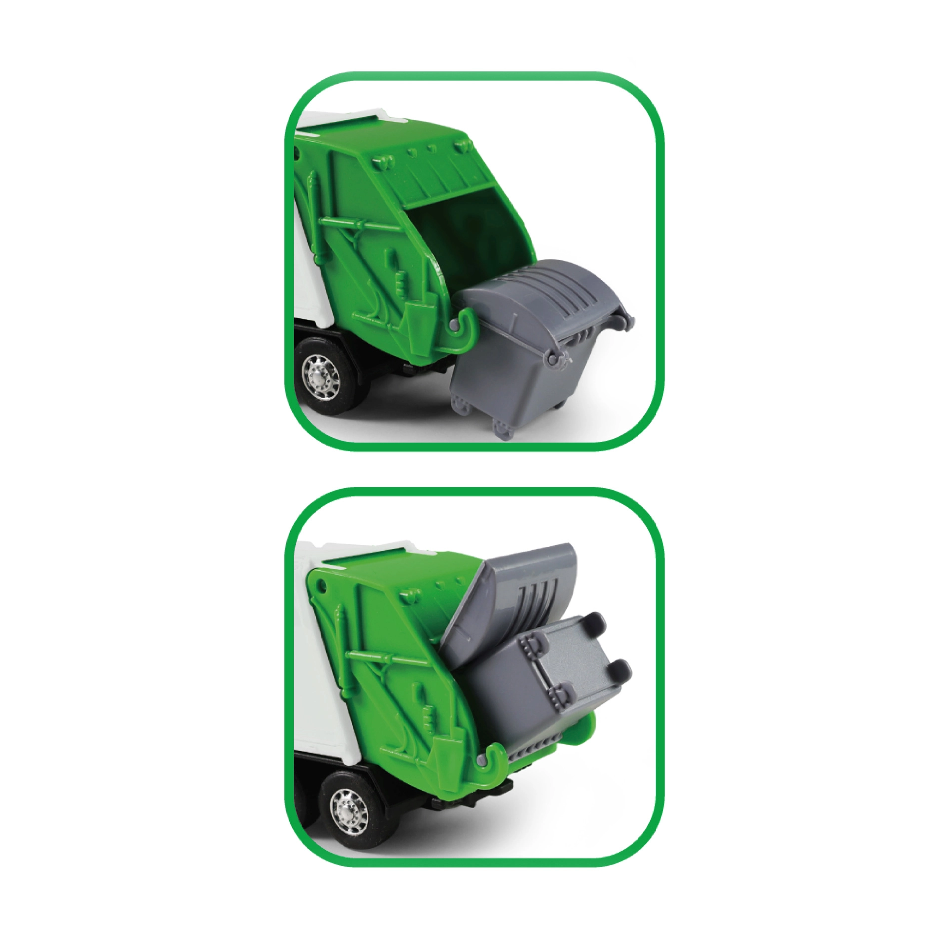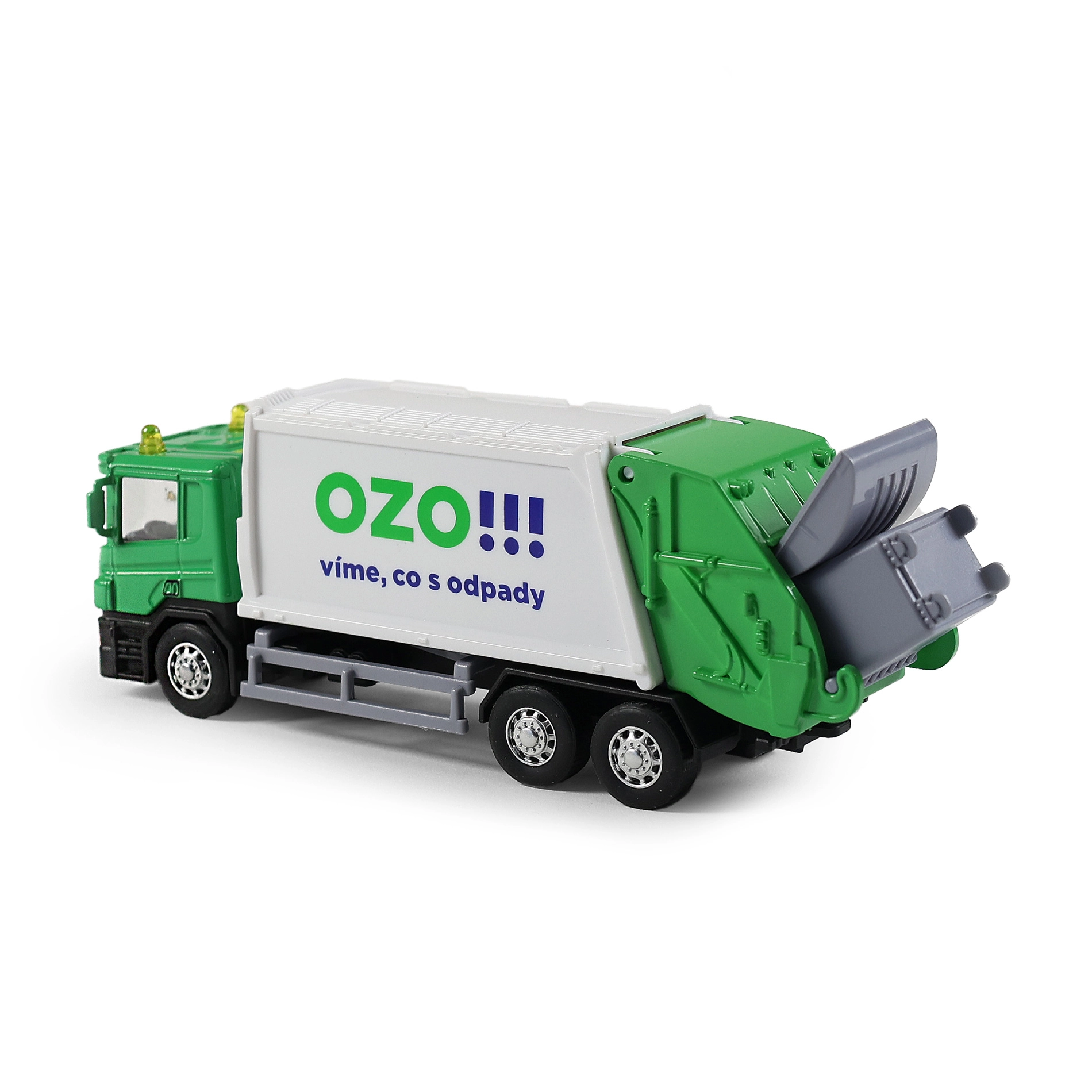 Šis detalizēti izstrādātais atkritumu savācēja modelis apvieno metāla konstrukcijas izturību ar plastmasas kravas kastes vieglumu, padarot to par perfektu rotaļlietu bērniem. Automobilim ir atveramas aizmugurējās durvis un tas ir aprīkots ar atveramu atkritumu tvertni, kas nodrošina realistisku spēli.