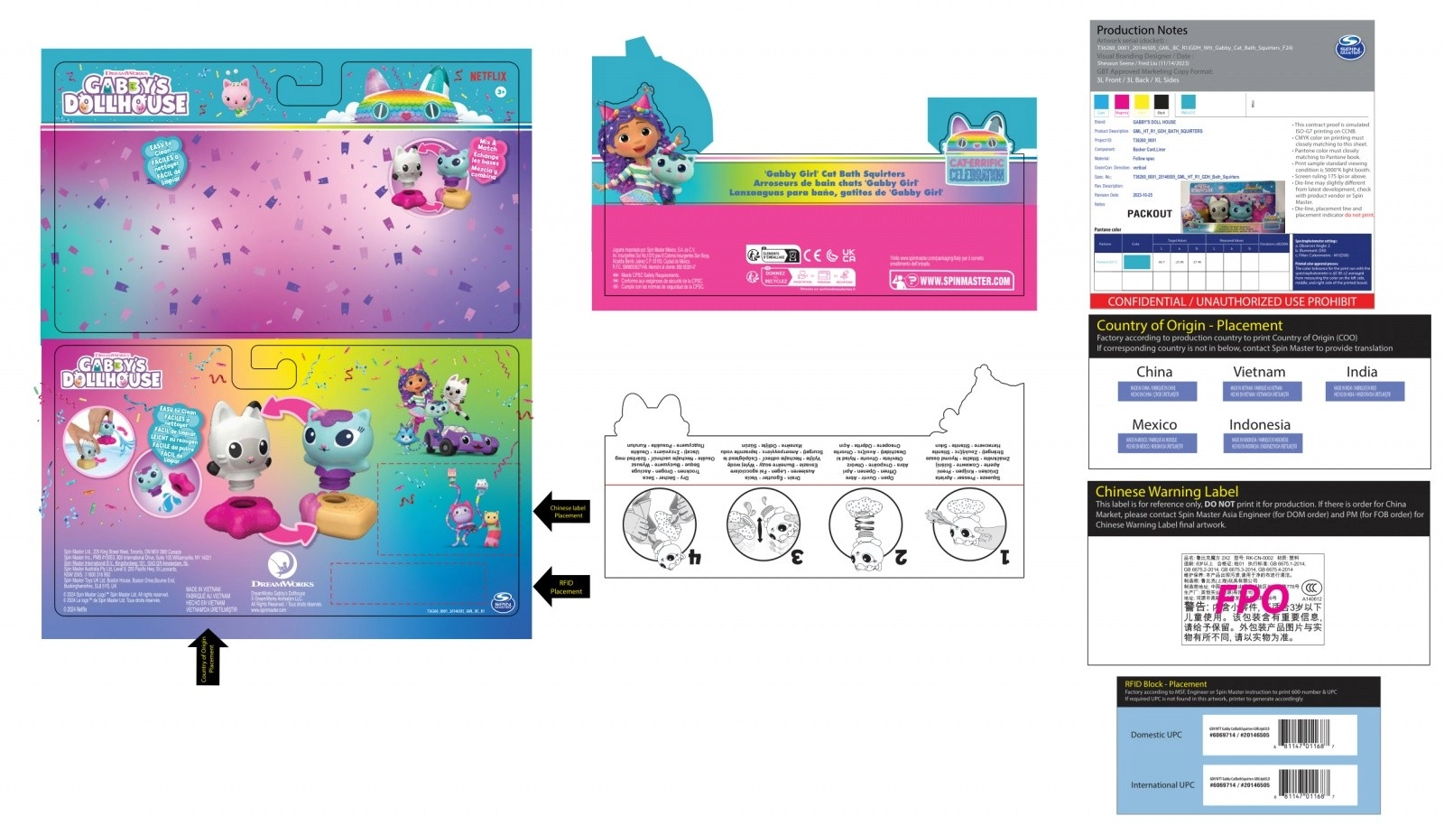 Izbaudiet peldēšanos, pilnu ar smiekliem, ar burvīgajām kaķu figurīnām no animācijas seriāla “Gabby's Dollhouse”. Šajā kolekcijā ir divas mīlīgas figurīnas, kas ne tikai šļāc ūdeni, bet arī peld pa ūdens virsmu.