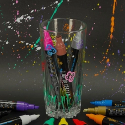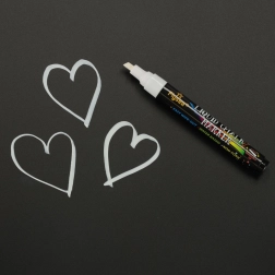 Ūdenī šķīstošā tinte no gludām virsmām noslaucāma ar mitru drāniņu. Ideāli ēdienkaršu tāfelēm, skatlogiem un mājas dekorācijām.