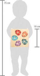 Katrai detaļai ir koka pogveida rokturis, kas atvieglo manipulācijas un veicina pareizu satvērienu un smalko motoriku.