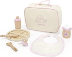 Komplektā ir viss, kas mazajiem aprūpētājiem nepieciešams: šķīvītis, karotīte, dakšiņa, knupītis, divas pudelītes un mīksts priekšautiņš. Pateicoties drošam izpildījumam, rotaļlieta ir piemērota bērniem no 3 gadu vecuma un kļūs par iemīļotu papildinājumu bērnu virtuvei un leļļu stūrītim.