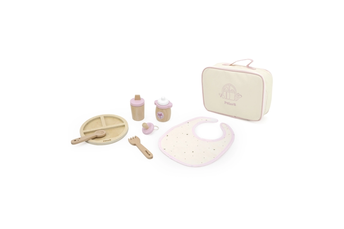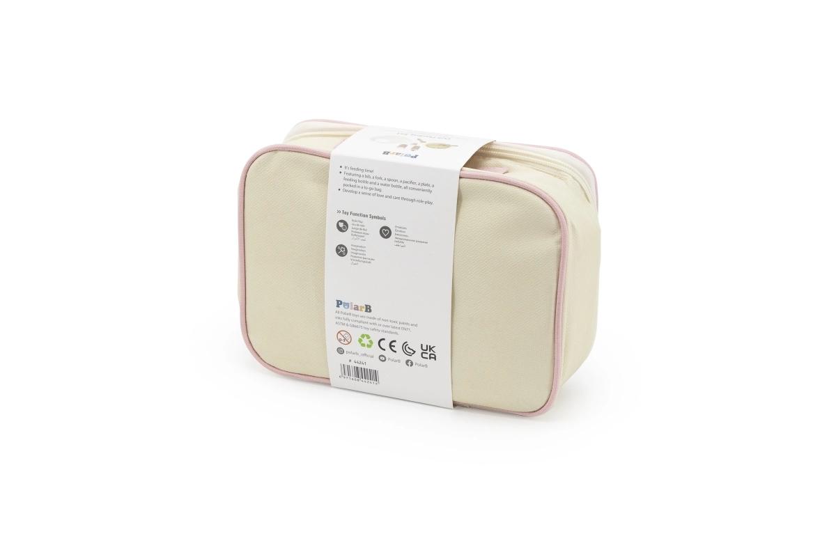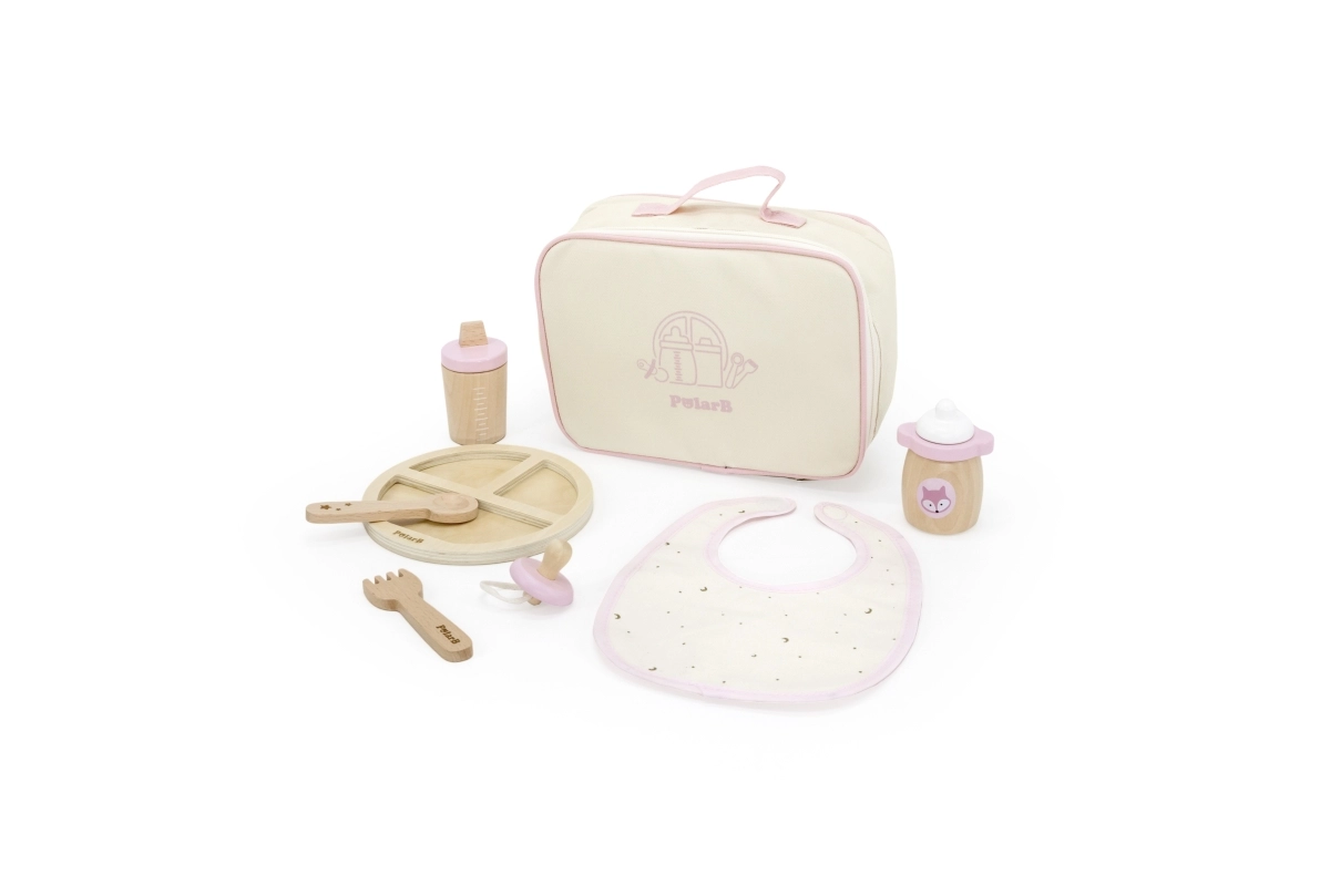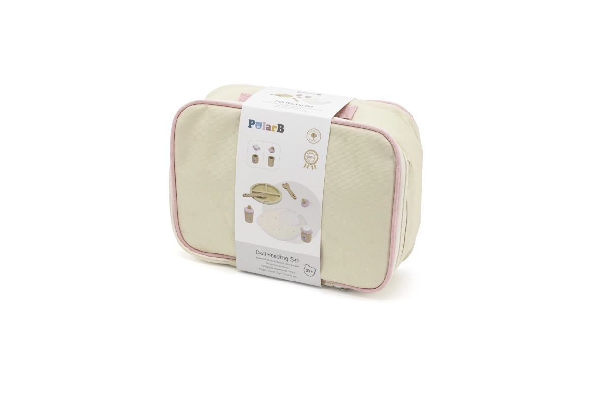 Lelles barošanas komplekts POLARB apvieno kvalitatīvas koka detaļas ar maigiem tekstilizstrādājumiem gaumīgā dizainā. Viss ir pārskatāmi sakārtots kompaktā somiņā ar rāvējslēdzēju, kas ir ideāla lietošanai mājās un ceļojumos. Rūpes par lelli dabiski attīsta empātisku uzvedību, atbildību un sīko motoriku.