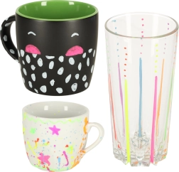 Krīta un ūdens bāzes tinte viegli noslaucāma ar mitru drāniņu, neatstājot pēdas.