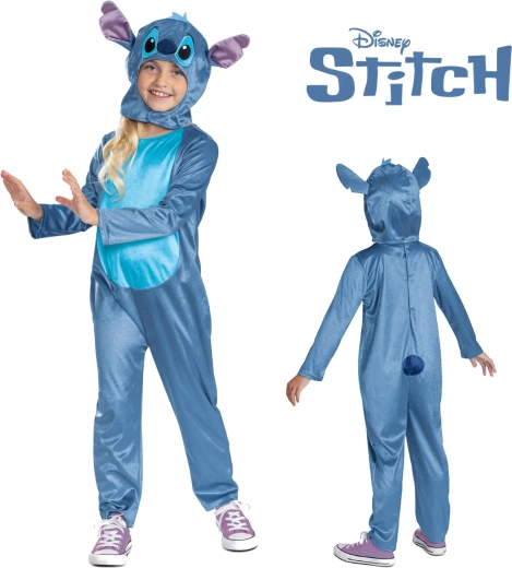 Pārvērtiet bērnu iemīļotajā varonī STITCH un sniedziet viņam bezgalīgus rotaļīgus piedzīvojumus. Viengabalains kombinezons no maiga poliestera ar kontrastējošu vēderiņu ir ar ērtu piegriezumu brīvai kustībai un kapuci ar izteiksmīgām ausīm un izšūtām detaļām. Lieliski piemērots karnevālam, masku ballēm, skolas pasākumiem un kostīmu spēlēm mājās.