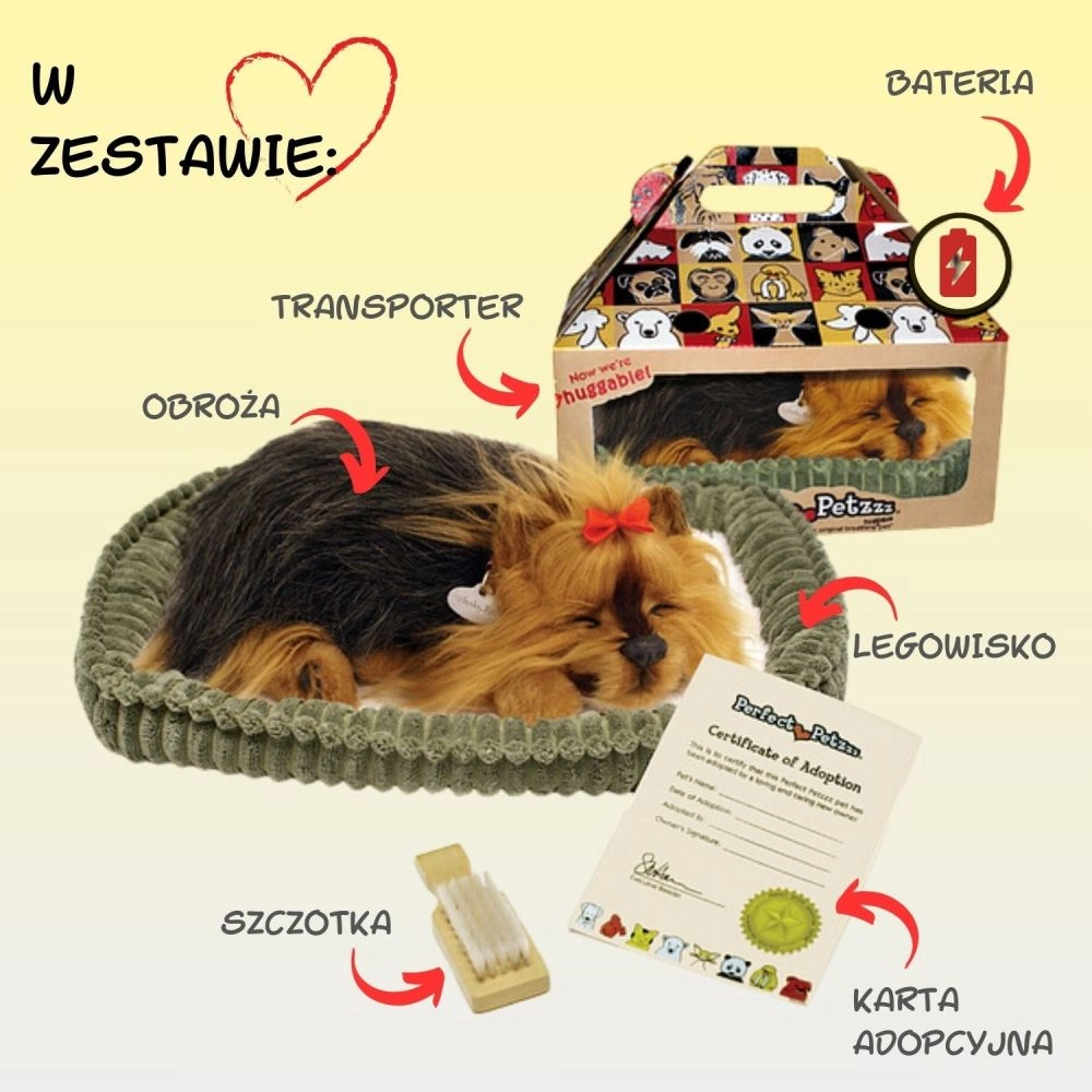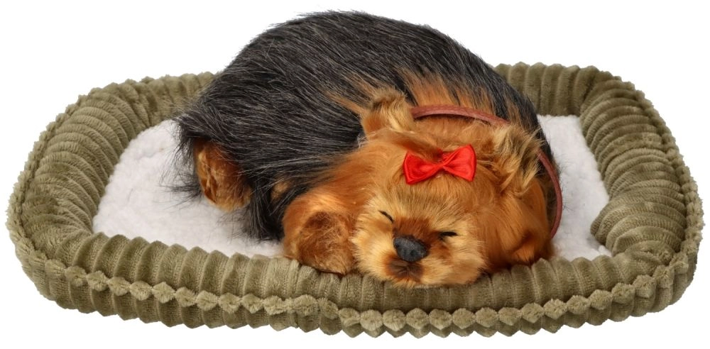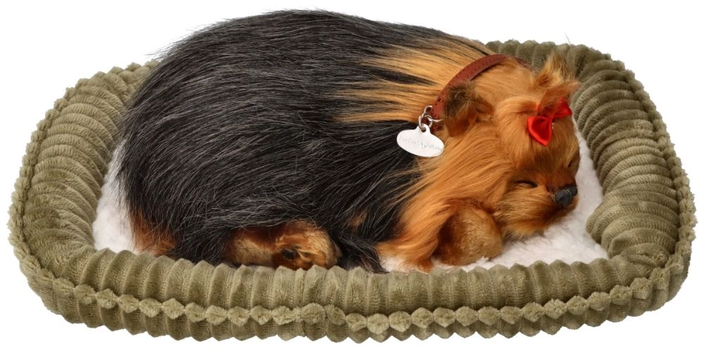 Atklājiet uzticama pavadņa burvību bez barošanas, pastaigām un nekārtības. Perfect Petzzz krācošs jorkšīras terjera kucēns izskatās īpaši reālistiski – apmierināti atpūšas uz mīksta spilventiņa, tam ir rūpīgi izstrādāta vilna un maiga krākšana, kas rada nomierinošu atmosfēru.