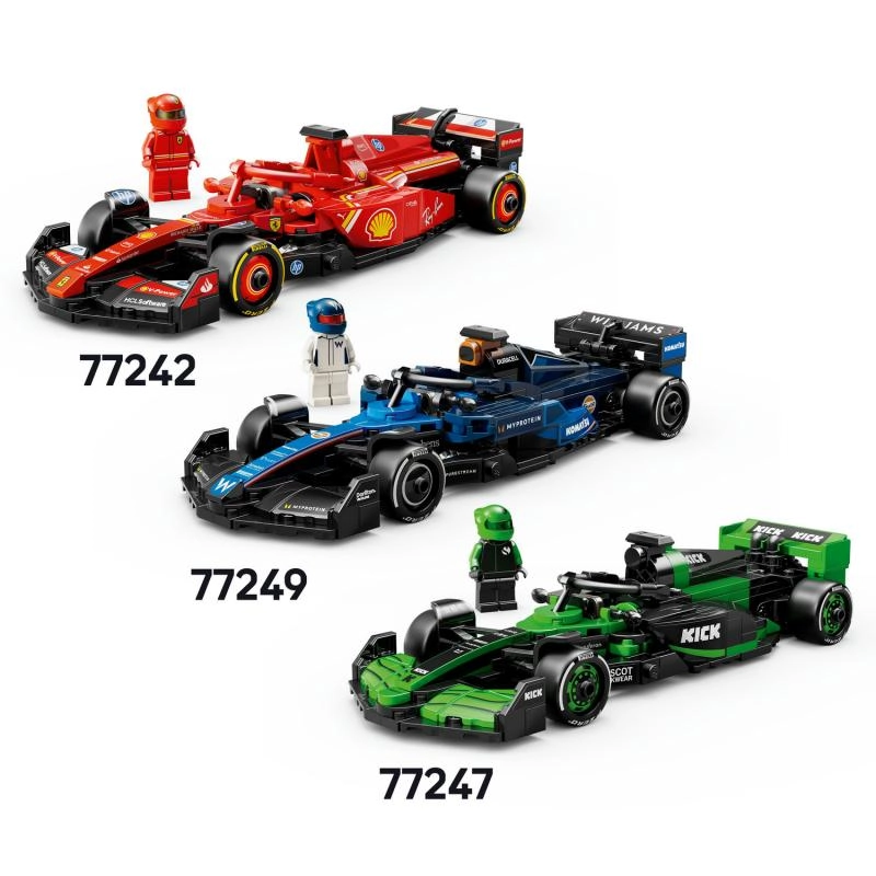 Komplektā ietilpst vadītāja minifigūriņa komandas kombinezonā un ar ķiveri – ielieciet to kabīnē un dodieties aizraujošās F1 sacīkstēs.