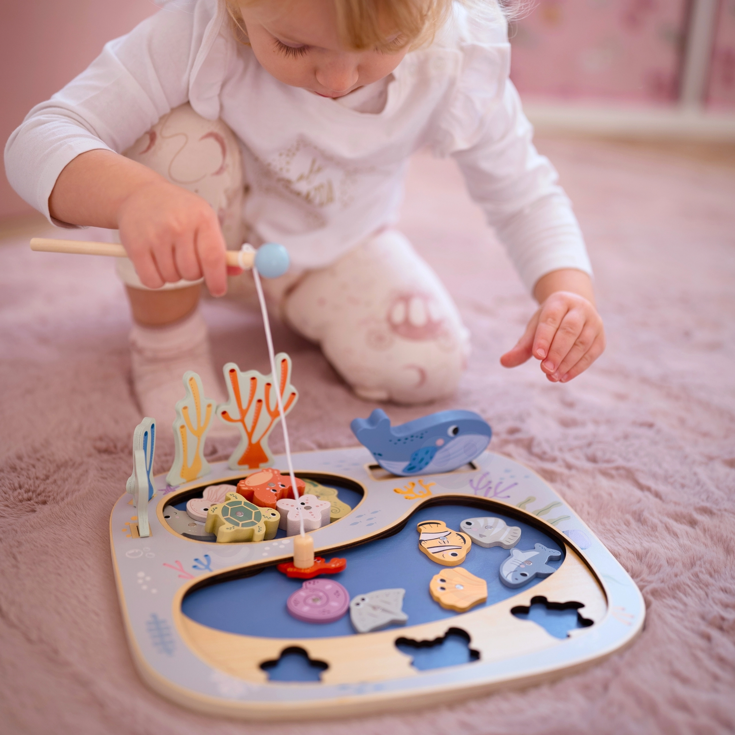 Spēle ar magnētiskajām makšķerēm un jūras radībām uzlabo acu-roku koordināciju.