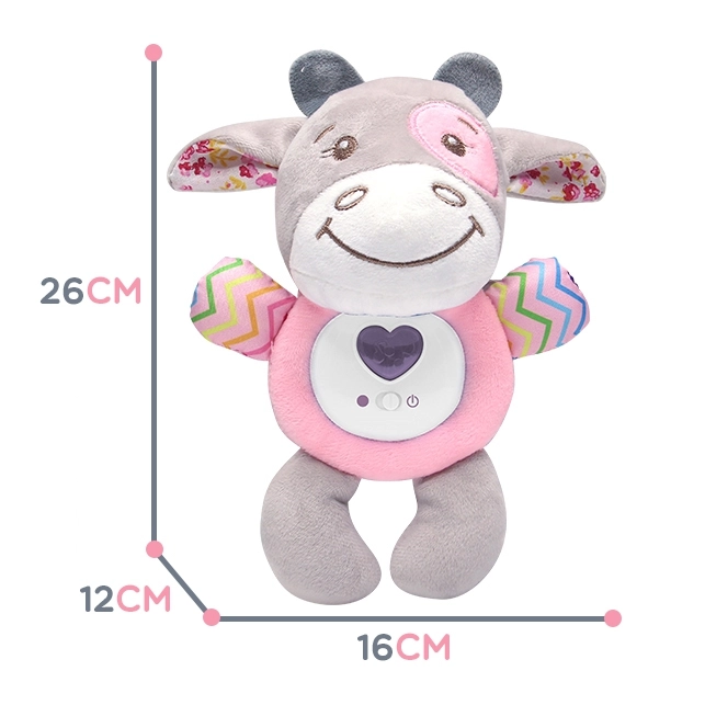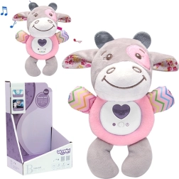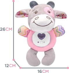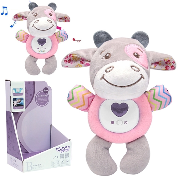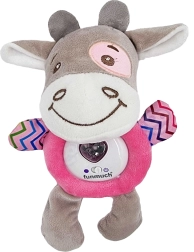 Interaktīvs mīksts vēršelis nomierina un iemidzina jūsu bērnu. Rotaļlietai ir iespēja atskaņot šūpuļdziesmas un projicēt krāsainas gaismiņas, kas izklaidēs mazo pētnieku. Šis mīkstais plīša draugs būs pavadonis jūsu bērnam jau no agrīna vecuma.