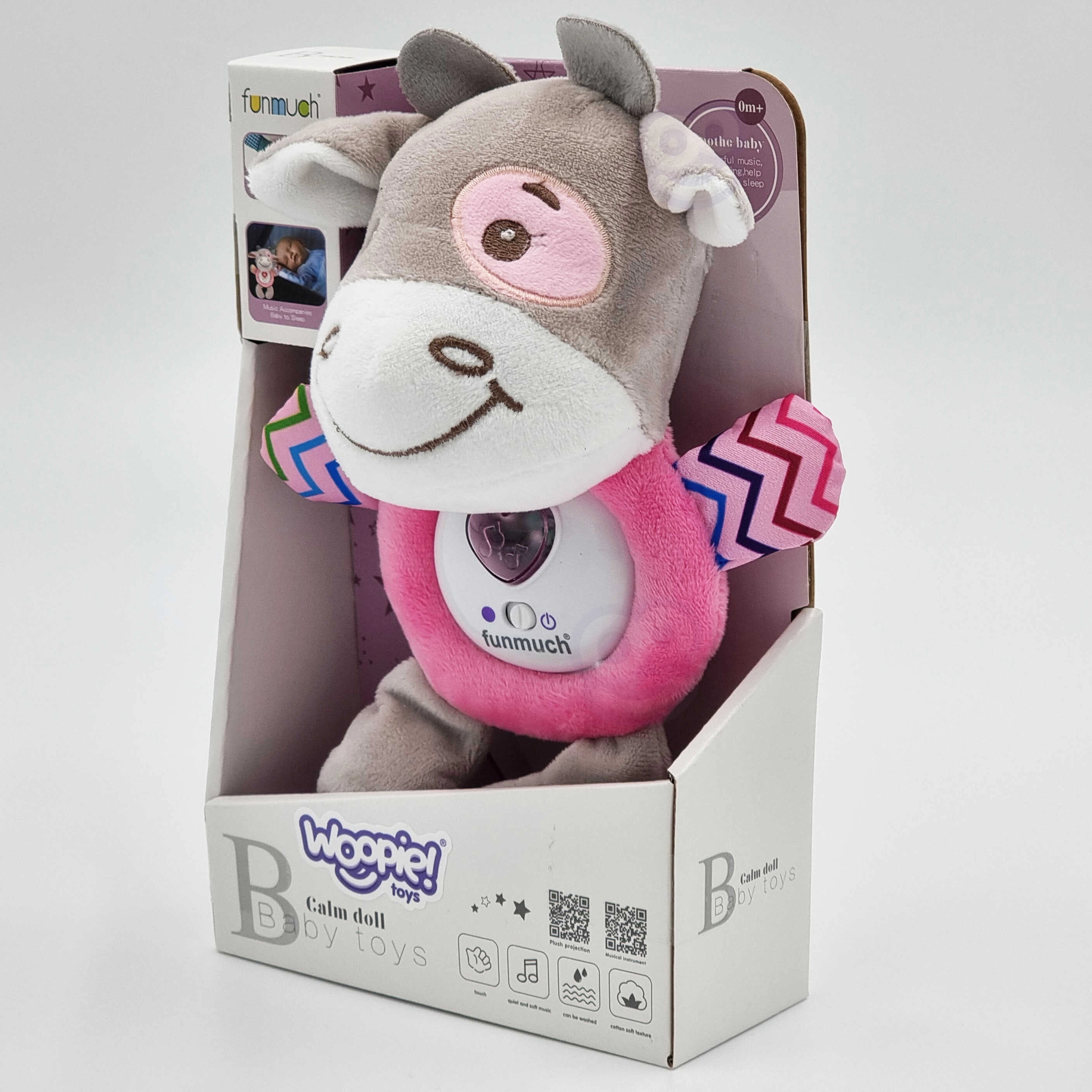 Pateicoties mīkstajam materiālam un vates pildījumam, šī rotaļlieta ir ideāli piemērota zīdaiņiem. Nav jāraizējas, ka jūsu mazulis varētu sev nodarīt pāri. Rotaļlietu var viegli un droši tīrīt – pietiek izņemt mehānismu. Tā ir ideāla kā plīša rotaļlieta iemigšanai, nodrošina gaismas un skaņas efektus. Vēl viena priekšrocība ir iespēja izņemt mehānismu mazgāšanas laikā.