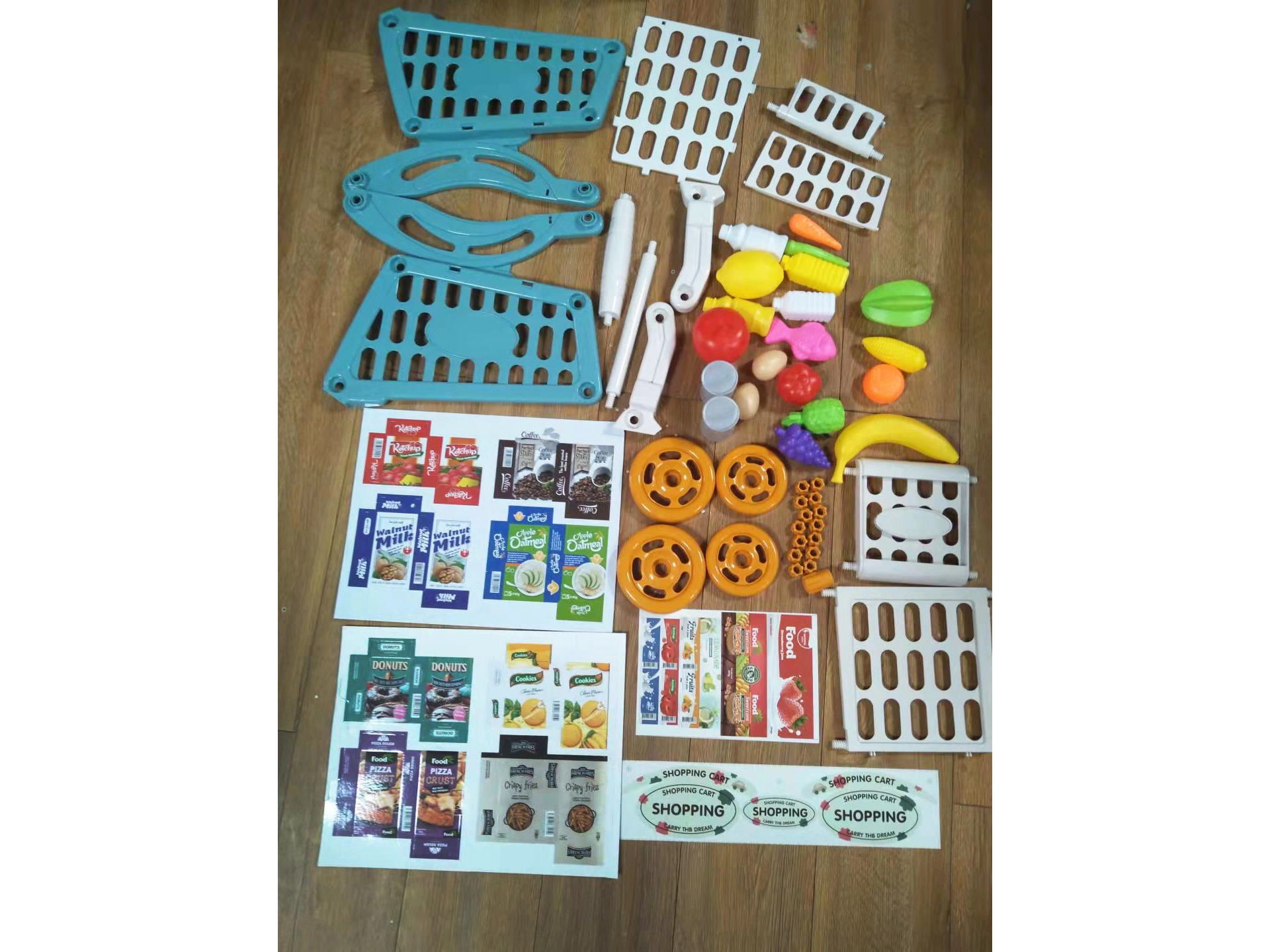 Bērnu iepirkumu ratiņi ar pārtikas produktu komplektu