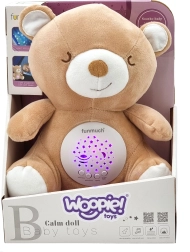 Mīlīgais plīša lācītis WOOPIE BABY ir ideāls aizmigšanas palīgs gan zīdaiņiem, gan vecākiem bērniem. Tas piedāvā gaismas efektus puncītī, 10 šūpuļdziesmas, nomierinošus balto troksni un sirdspukstus un 3 skaļuma līmeņus. Mīksts izpildījums, viegla kopšana pateicoties izņemamam mehānismam, un bērniem drošs dizains padara lācīti par neaizstājamu palīgu mierīgam miegam.