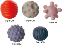 Pateicoties mīkstam, drošam materiālam, kubi ir piemēroti arī kā graužamlieta zobu šķilšanās laikā. Iepakojumā ir 6 gabali kartona kastītē ar lodziņu – lieliska dāvanu ideja mazulīšiem no 6 mēnešiem. Spēlēšanās ar kubiem attīsta sīko motoriku, tausti, koncentrēšanos un veicina loģisko domāšanu un sadarbību.