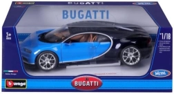 Atklājiet reālistisku BUGATTI Chiron repliku populārajā mērogā 1:18. Modelis apvieno metāla virsbūvi ar smalki izstrādātām plastmasas detaļām un piedāvā uzticamas proporcijas, autentisku krāsojumu zilā–melnā kombinācijā un kvalitatīvus logo apdruku. Ideāli piemērots kā kolekcionējams modelis un kā premium rotaļlieta bērniem no 3 gadu vecuma.