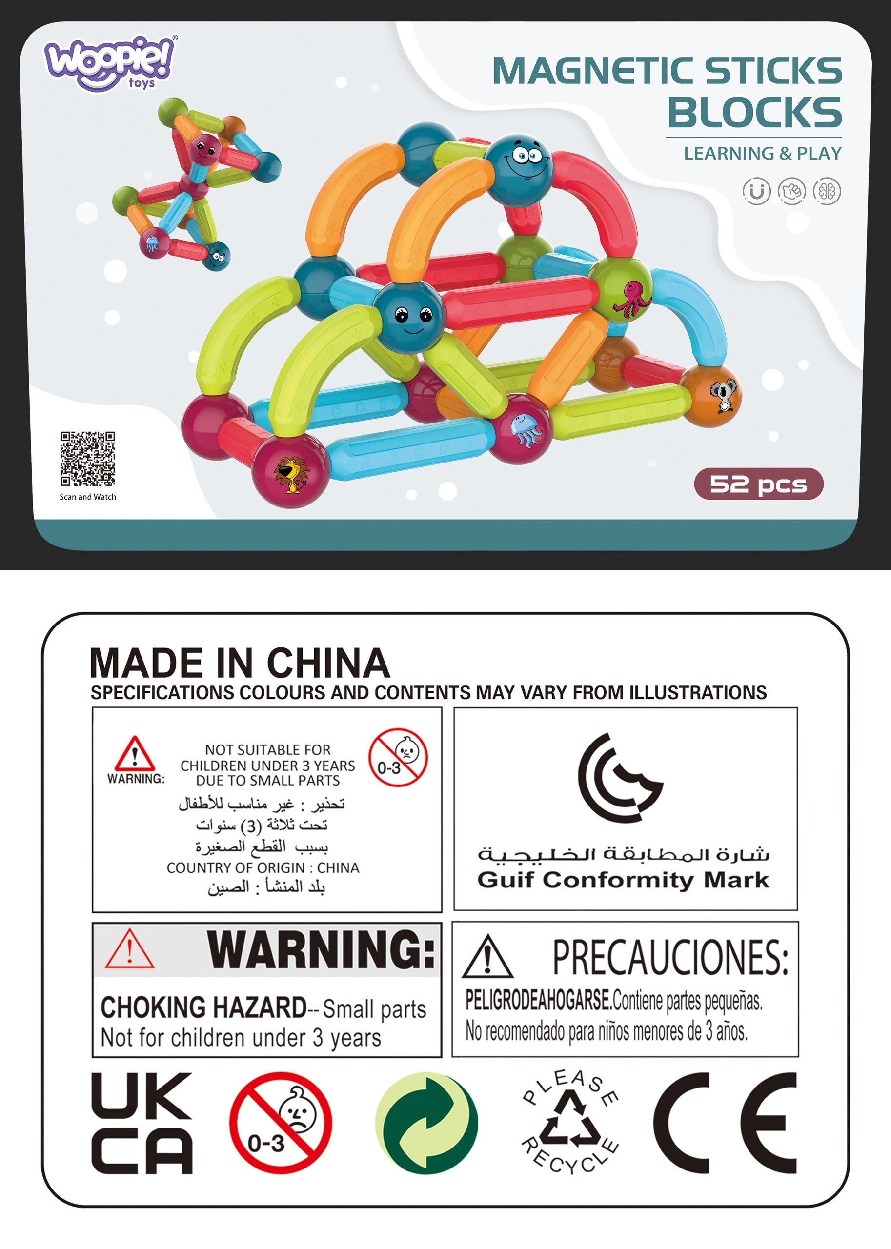 Izklaide un mācīšanās apvienojas magnētiskajos konstruktoros no zīmola Woopie! Komplektā ir 52 koši un droši elementi, kas ir ideāli piemēroti mazām rokām un ļauj veidot dažādas konstrukcijas.