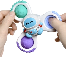 Woopie bērnu spineru komplekts iedvesmots no kosmosa tēmas ar raķetes, citplanētieša un NLO motīviem. Šīs plastmasas rotaļlietas ir lieliska izvēle spēlēšanai dažādās vidēs. Spinerim ir gumijas elementi spiešanai, kas stimulē maņu attīstību. Pateicoties piesūcekņiem, rotaļlietas viegli piestiprinās pie dažādām virsmām, kas ir ideāli ceļojumos vai peldoties vannā. Elastīgie gultņi nodrošina vienmērīgu un ilgstošu rotāciju bez piepūles.